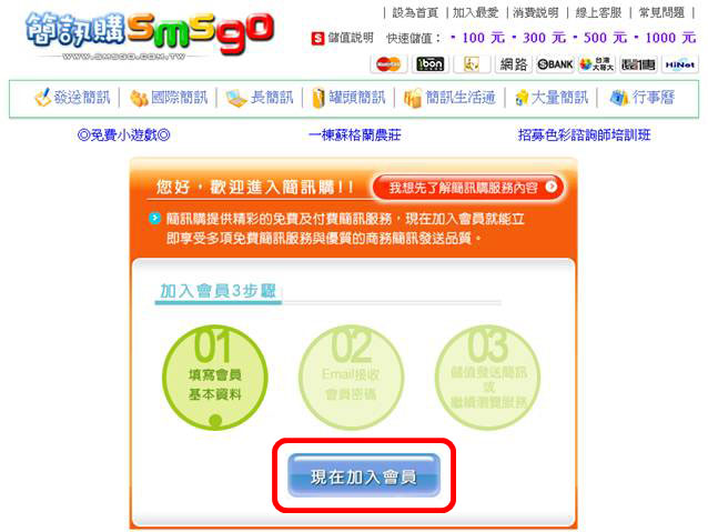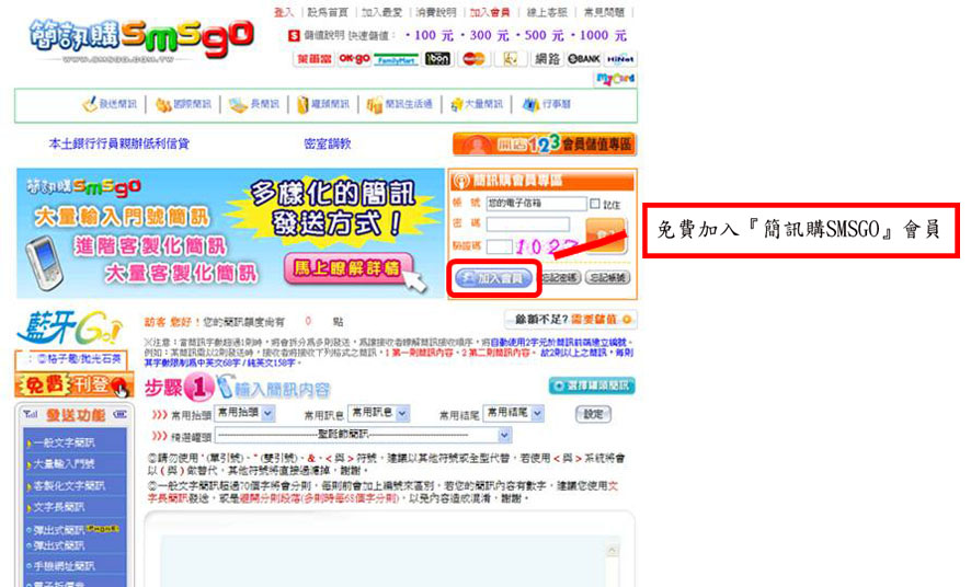 | 一、1.免費加入『簡訊購SMSGO』會員 | ||